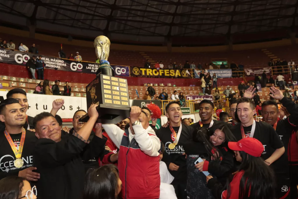 Celebración de Simón Bolívar después de ganar a El Vecino en el coliseo Jefferson Pérez.