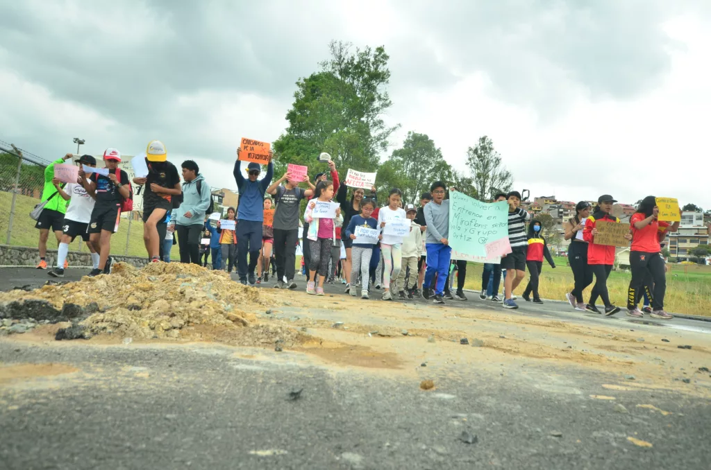 Ante la ausencia de atletas de alto rendimiento, los deportistas en formación alzaron la voz junto a sus padres y entrenadores para reclamar una pista sintética para la tercera ciudad del Ecuador.
