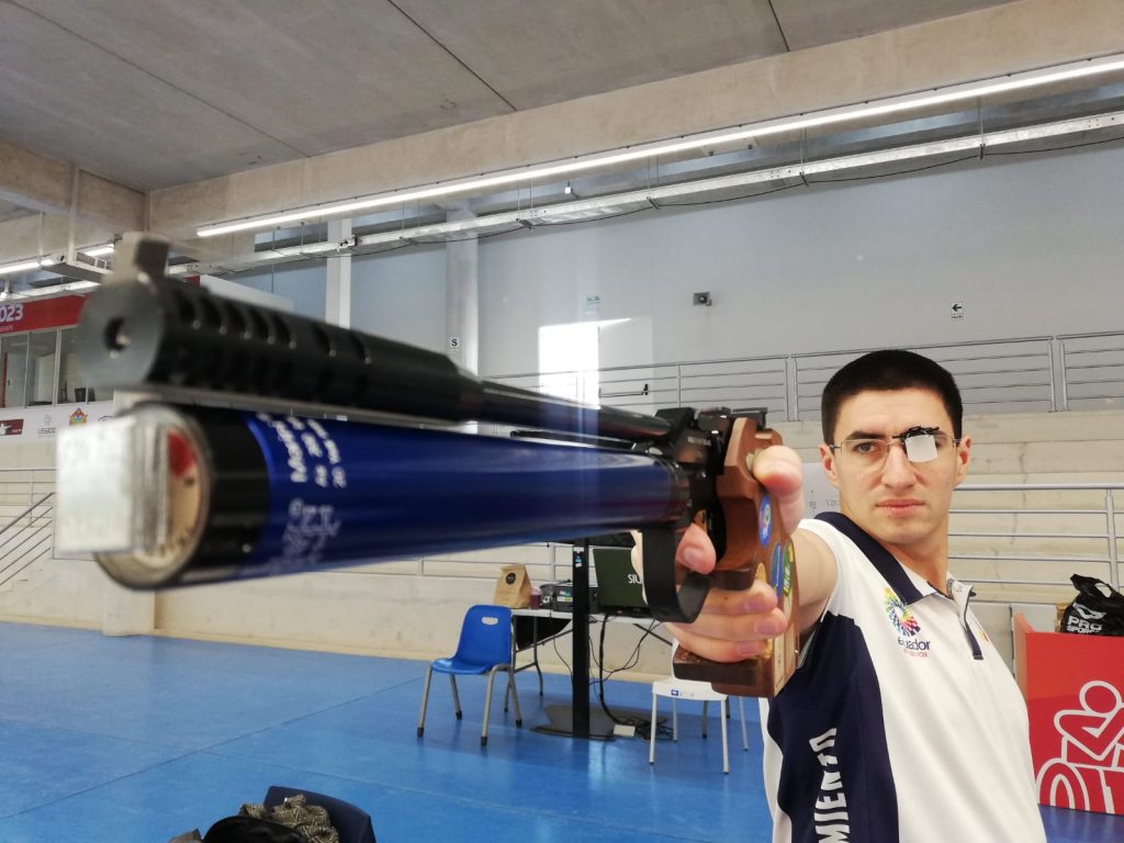 El pistolero azuayo practicó tiro olímpico por cerca de una década hasta 2016. Entonces disparaba con un arma que le prestaba la FDA. Para su regreso invirtió alrededor de 1.100 dólares en la adquisición de un SCATT (Sistema Electrónico de Entrenamiento y Análisis de Tiro) y cerca de 1.500 dólares en la compra de una pistola usada.
