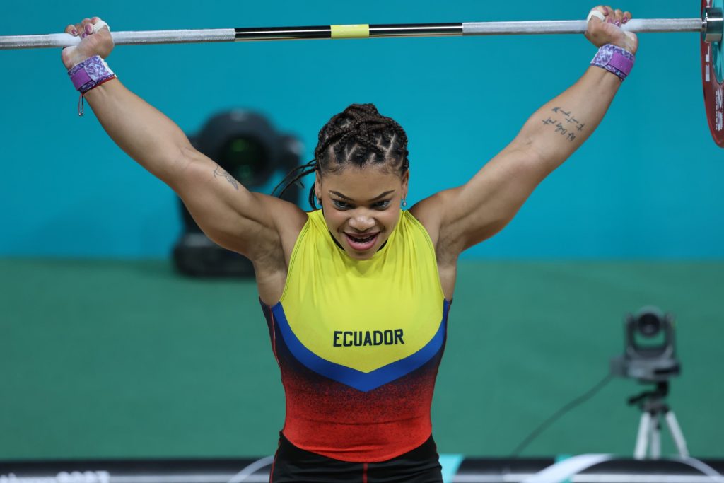 La destacada pesista ecuatoriana se impuso con facilidad en la categoría de los 71 kilogramos, logrando la codiciada medalla de oro este domingo 22 de octubre de 2023.