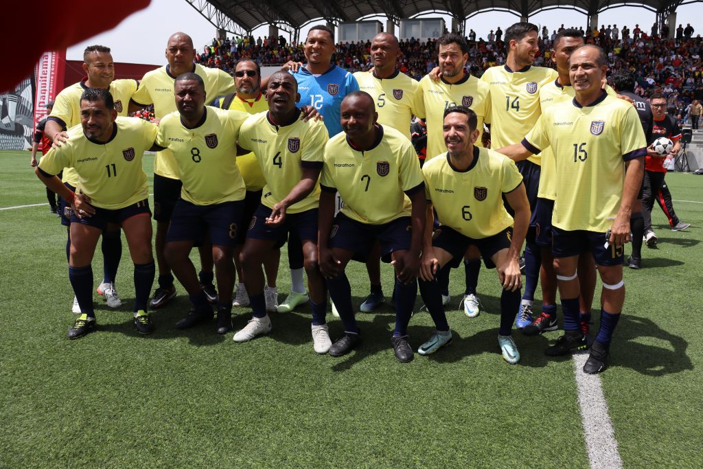 Previo al compromiso amistoso, los ex seleccionados salieron uno tras otro, ovacionados y aplaudidos por los asistentes. El primero en tocar el césped sintético fue el eterno capitán de Ecuador, Iván ‘Bam Bam’ Hurtado. Detrás de él salió Édison Méndez, José Gavica, Alberto Montaño, Eduardo Hurtado, Jaime Iván Kaviedes, Neicer Reascos, Máximo Banguera, Pedro Quiñónez y por último hizo su entrada ‘Pancho’ Cevallos.