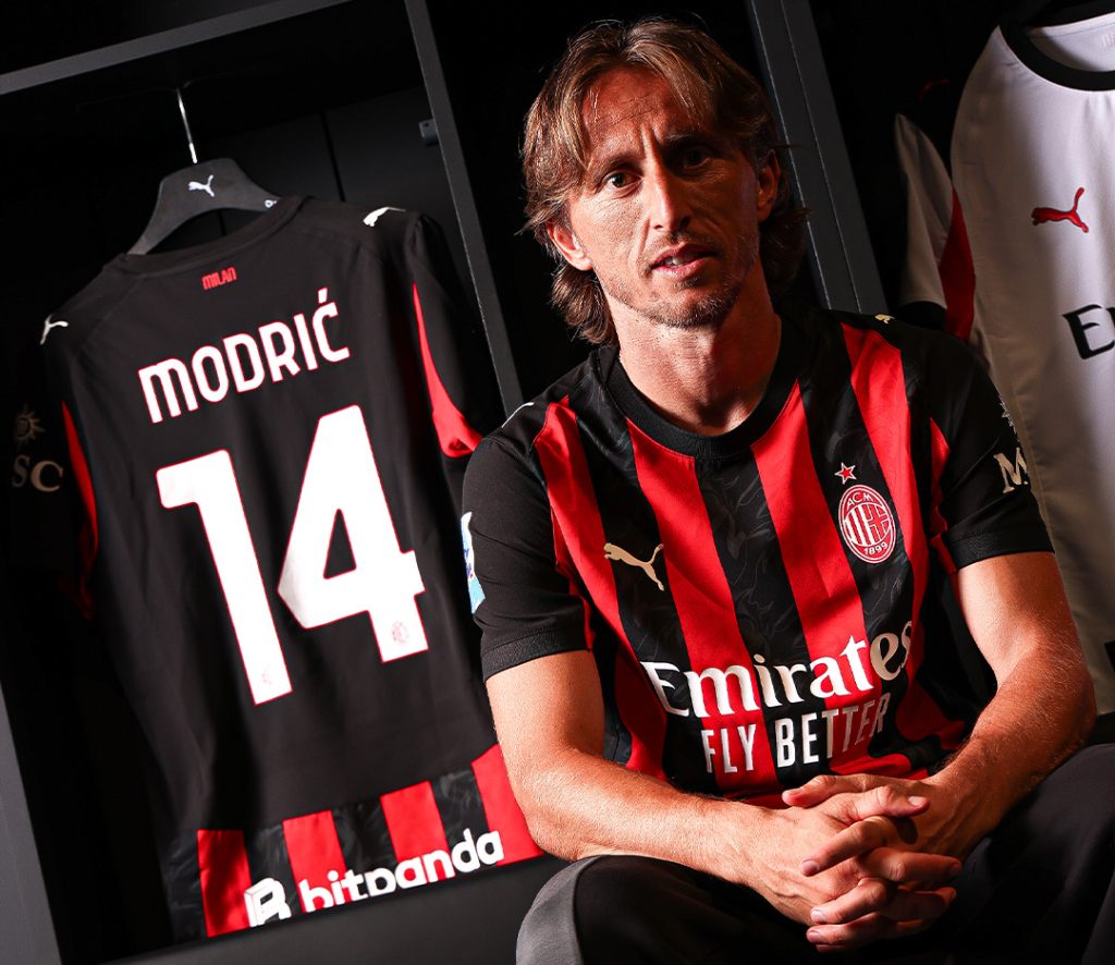 El croata Luka Modric, excapitán del Real Madrid y Balón de Oro en 2018, vestirá el número 14 en la camiseta del Milan. Esto fue confirmado por el club la noche del lunes 14 de julio del 2025. Especificaron que su contrato durará hasta 2026 con posibilidad de alargarlo un año más.
