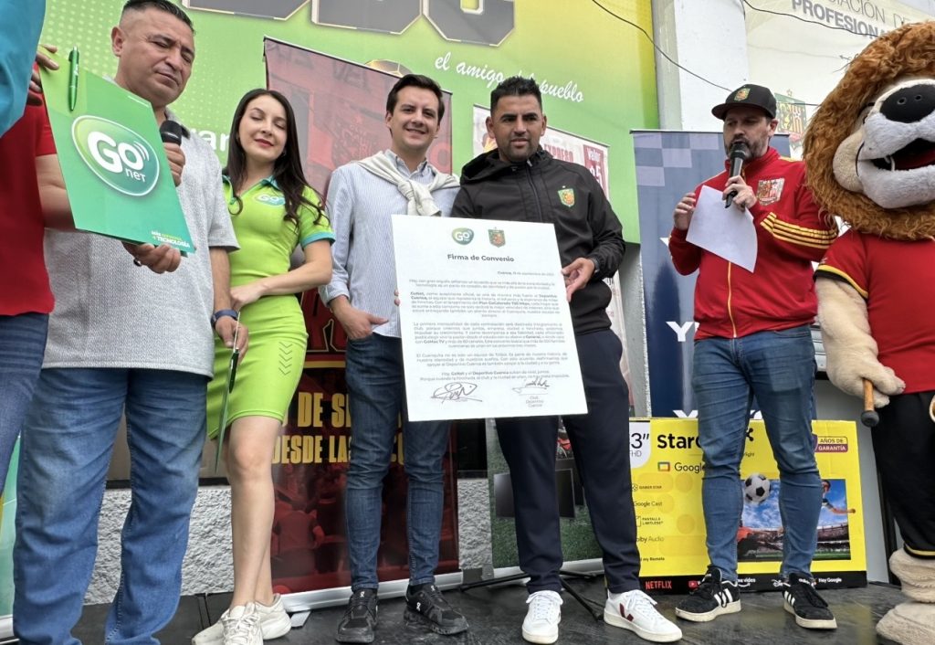 En los exteriores del estadio Alejandro Serrano Aguilar, durante la Cruzada Roja que se desarrolló el viernes 19 de septiembre, Deportivo Cuenca y su auspiciante oficial GoNet presentaron el Plan GoColorado 700 Mbps. Esta es una iniciativa que une la tecnología con el fervor futbolero.