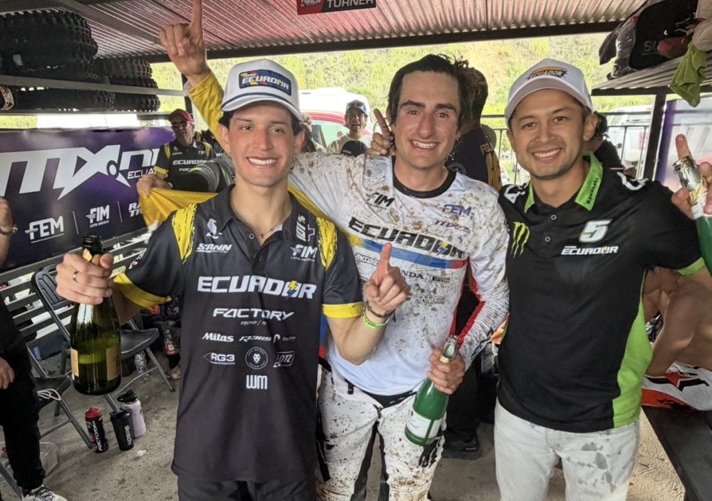 El rugido de los motores aún resuena en la pista MX Race Track de Cuenca. El polvo, el sol y los gritos del público fueron testigos de un día que quedará en la historia del motociclismo ecuatoriano. Ecuador se consagró por primera vez campeón del Motocross de las Naciones Latinoamericanas, y lo hizo en casa, impulsado por tres nombres que hoy vibran con orgullo: Pedro “Piluko” Suárez, Andrés ‘Beneno’ Benenaula y Nicolás ‘Niki’ Merchán.