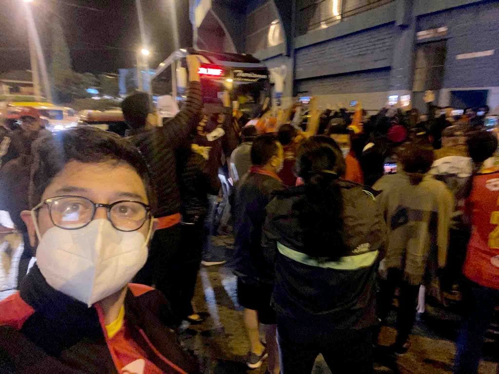 Mientras en el exterior del estadio Alejandro Serrano Aguilar, la barra Crónica Roja esperó con cánticos la salida de los jugadores y cuerpo técnico para agradecerles por el esfuerzo realizado para dejarle al Cuenca en la máxima categoría del balompié nacional. (BST)-(D)