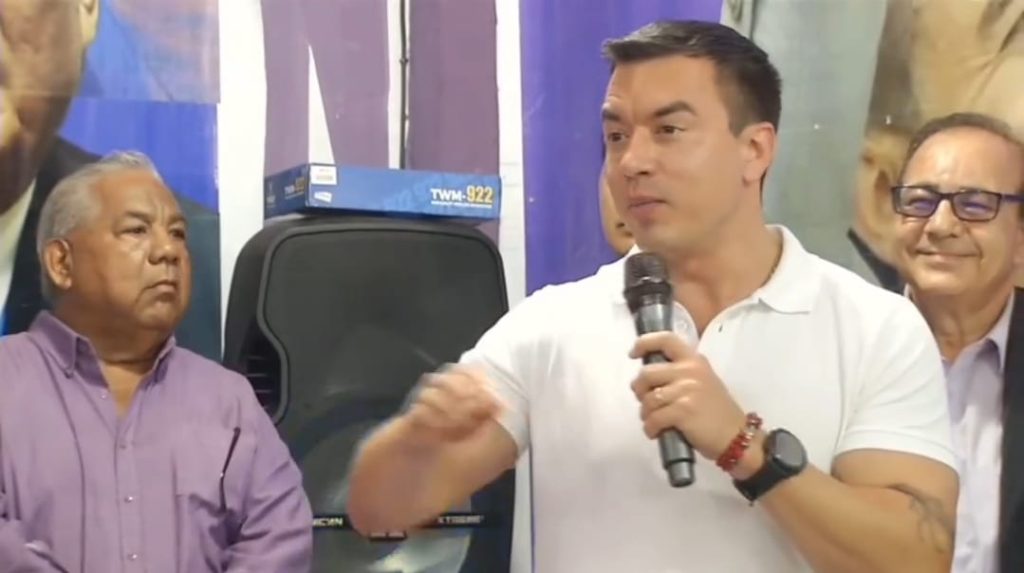 “Esta es una infracción muy grave, que se concretó el domingo, cuando Noboa se dirigió usando recursos públicos en el debate o induciendo al voto desde una función pública, que hace cuando acude con camisetas moradas distintivas de su organización política a actos de Gobierno; la norma es clara y las autoridades no tienen pretexto para no sancionar”, afirmó Alarcón.