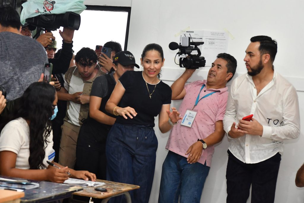 La candidata a la presidencial de Ecuador por la Revolución Ciudadana, Luisa González, ejerció su derecho al voto pasadas las 09:15 en la unidad educativa Carlos Pomerio Zambrano, en Canuto, parroquia perteneciente al cantón Chone, en la provincia de Manabí.