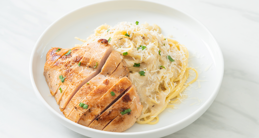 - Sella la pechuga en una sartén con aceite de ajonjoli hasta dorar.