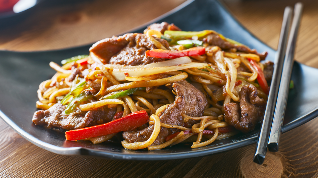 - A nuestro cerdo y pollo le agregamos salsa China de Soya Oriental, Salsa de Ostras y Maicena Oriental para posteriormente freír con aceite de oliva. Mientras se fríe agregamos un poco de jengibre en polvo, cebollín, sal y ajo en polvo para proceder a mezclar.