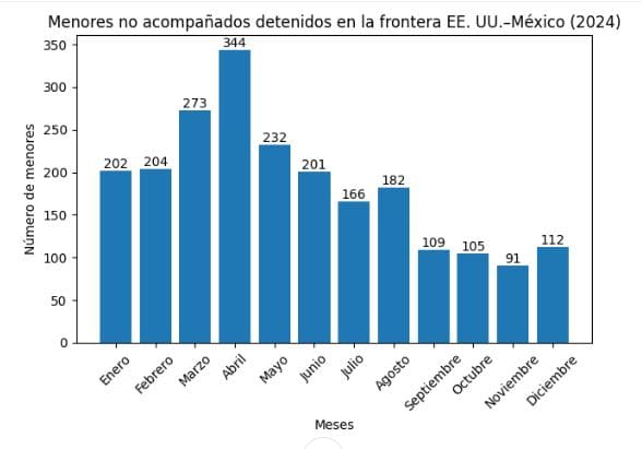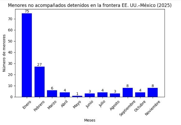 De acuerdo con datos de la Customs and Border Protection (CBP), en enero de 2025 un total de 75 menores de edad no acompañados quedaron detenidos en la frontera con México.