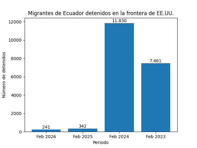 En febrero de 2026, un total de 241 migrantes de Ecuador fueron detenidos en Estados Unidos (EE.UU.) en la frontera con México. Así lo revelan los datos publicados por Customs and Border Protection (CBP).