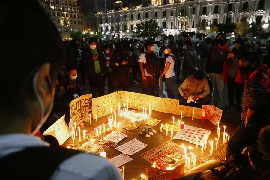 Tras el saldo trágico de la represión, y ante la demanda generalizada del país, Manuel Merino dimitió este domingo a la Presidencia, mientras que el Congreso busca encontrar una salida constitucional a la crisis y hallar un sucesor al presidente. EFE