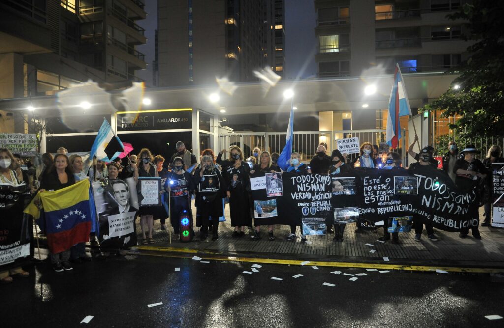 Ataviados con ropa negra y portando velas, faroles y linternas, unas pocas decenas de ciudadanos se encontraron en el centro de la capital y pusieron rumbo al complejo de viviendas Le Parc, en el barrio de Puerto Madero, donde se encuentra el apartamento en donde vivía Nisman y en el que apareció con un tiro en la cabeza.