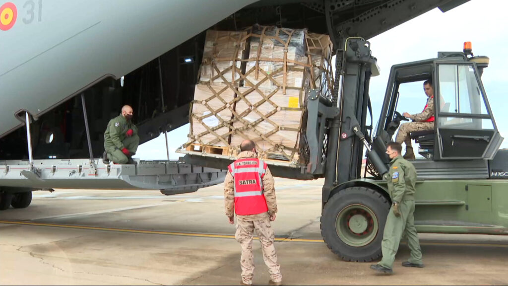 Los dos aviones A400M del Ejército del Aire llevarán 20.000 kilos de equipos de protección individual y material sanitario del Ejército de Tierra español.