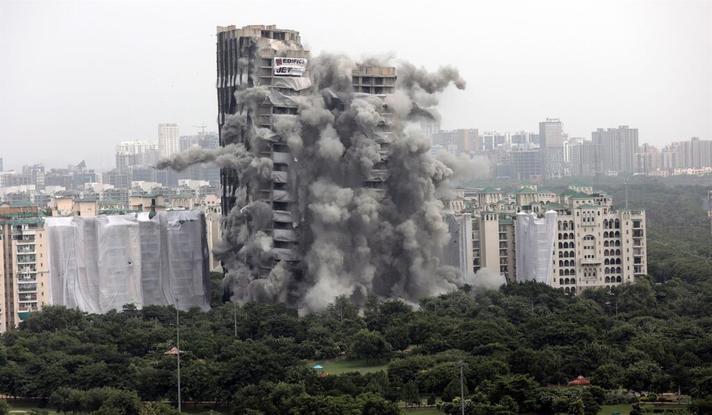 Nueva Delhi, 28 ago (EFE).- Más de 3.700 kilos de explosivos se emplearon para demoler en tan solo nueve segundos hoy, dos enormes rascacielos de una treintena de plantas en las proximidades de Nueva Delhi, cuya implosión generó una gran expectación en la India por estar situadas apenas a unos metros de distancia de varios edificios residenciales.