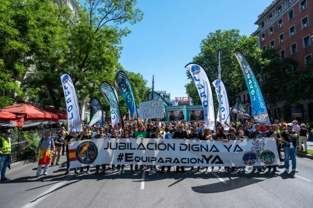 Los policías autonómicos «se van a poder jubilar seis años antes que nosotros, a los 59 años, sin perder poder adquisitivo, con la jubilación máxima; nosotros, seis años después y perdiendo más de 1.000 euros mensuales (1.100 dólares). Tenemos motivos de sobra para seguir luchando», explicó a EFE Miguel Gómez, presidente de Jusapol.