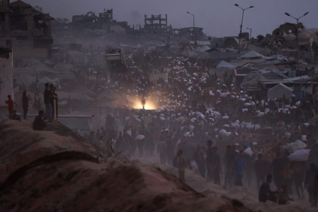 En su extremo sureste, el punto de paso israelí de Kerem Shalom, por el que pasan los camiones con ayuda humanitaria, es el único punto de la Franja que presenta ahora una mayor luminosidad nocturna a la de antes del conflicto. AFP