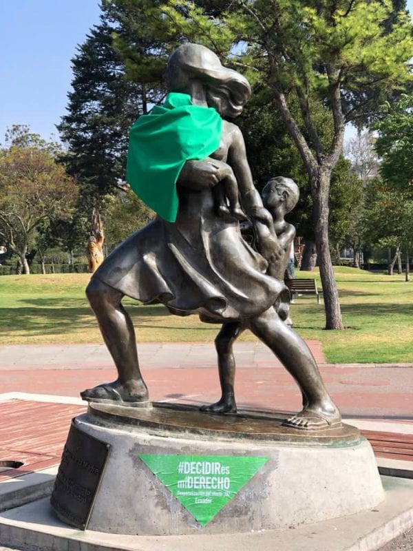 Desde temprano, mujeres acudieron al Parque de la Madre. Colocaron pañuelos verdes alrededor del monumento en honor a la madre. (I)