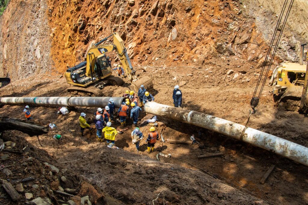 Este proceso natural empezó a registrarse en 2020 y desde entonces Petroecuador ha construido algunos desvíos para reconducir la tubería.