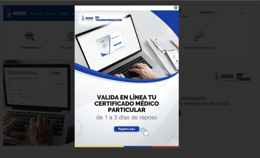 Debido a la alta demanda de afiliados que buscan validar los certificados médicos particulares en el Instituto Ecuatoriano de Seguridad Social (IESS), la institución habilitó una opción para que este trámite se pueda realizar de forma virtual si el tiempo de reposo es de 1 a 30 días.