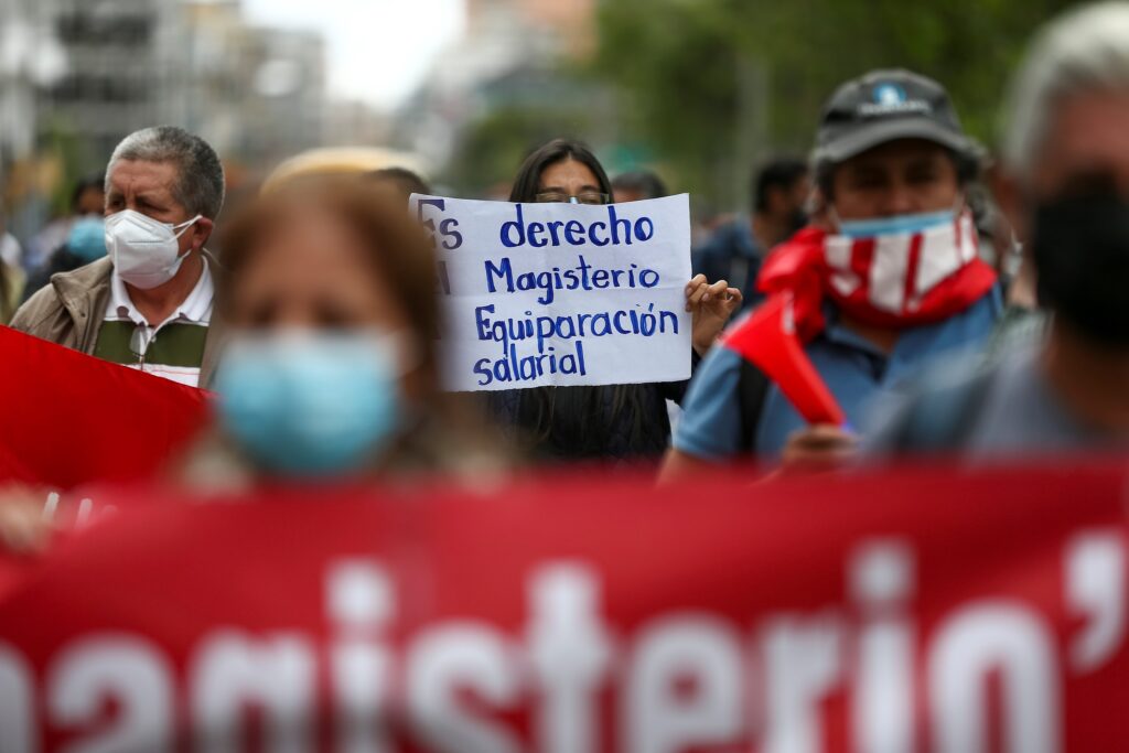 Los maestros caminaron de forma pacífica por varias calles de Quito, la capital del país, ante la mirada de policías antidisturbios, pero no se produjeron incidentes.