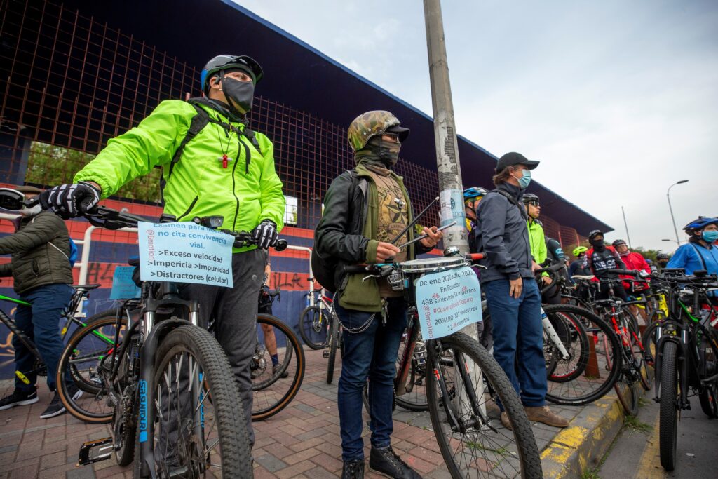 Alrededor de medio centenar de ciclistas se reunieron en la llamada Tribuna de los Shyris, en el centro norte de Quito, junto al Parque La Carolina, un lugar donde se practican varios deportes, entre ellos el ciclismo.