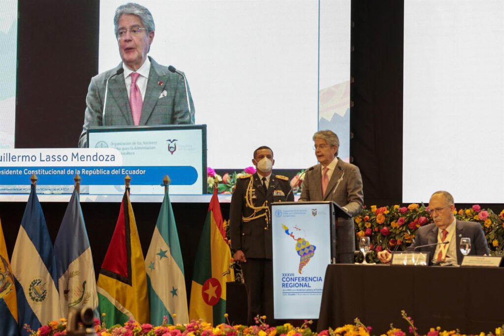 El presidente de Ecuador, Guillermo Lasso, solicitó este miércoles en la inauguración de la trigésimo séptima Conferencia Regional de la Organización de la ONU para la Alimentación y la Agricultura (FAO) un trabajo conjunto que optimice los recursos alimentarios y evite así el desperdicio por un lado y la escasez por otro.