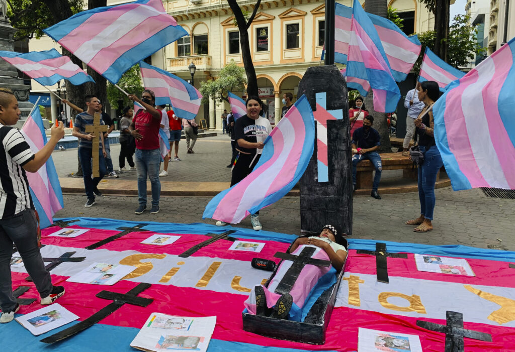 Entre las convocatorias, se realizó una puesta en escena frente a la sede de la Fiscalía de la provincia de Guayas, en Guayaquil, en la que se recreó el luto de los asesinatos trans con miembros del colectivo introducidos en ataúdes.
