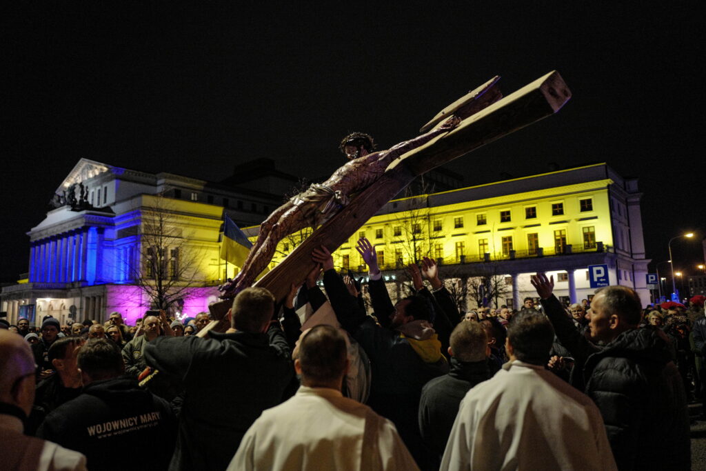 A miles de kilómetros de Roma, unas horas antes, el limosnero del papa, el cardenal polaco Konrad Krajewski, celebraba otro Vía Crucis entre las ruinas de las ciudades de Bucha y Borodianka, convertidas en símbolo de la masacre y de la ruina del conflicto.