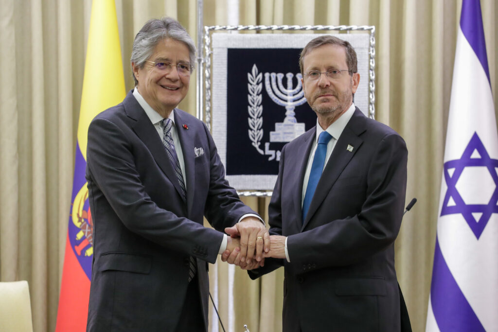 El presidente israelí, por su parte, agradeció a Lasso su visita, la primera de un gobernante ecuatoriano, y destacó «el giro que está liderando en las relaciones del Ecuador con el Estado de Israel».