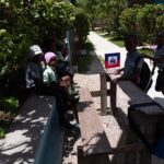 A la media hora de la caminata y apenas a unos pasos del río, los agentes ven a lo lejos un grupo de al menos siete adultos y cuatro niños venezolanos descansando bajo las ramas de un árbol que los escuda del sol.
