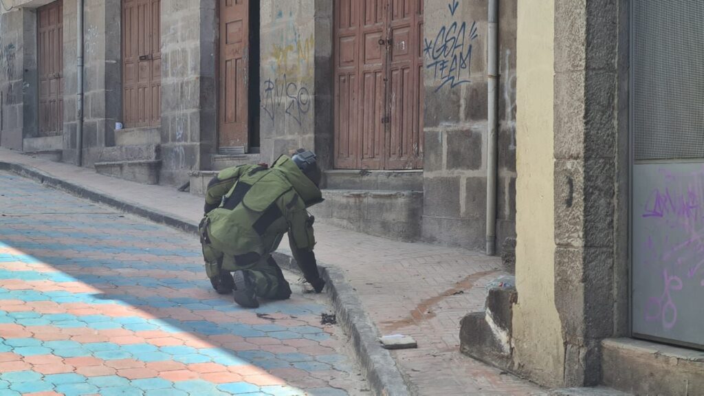 Javier Toapanta Shunaula, capitán a cargo del procedimiento, junto a los técnicos antiexplosivos del Grupo de Intervención y Rescate, realizaron un registro en la escena del incidente y encontraron 20 cápsulas detonantes eléctricas inestables y cinco fragmentos de cápsulas consumidas, con rastros de efectos de una detonación.