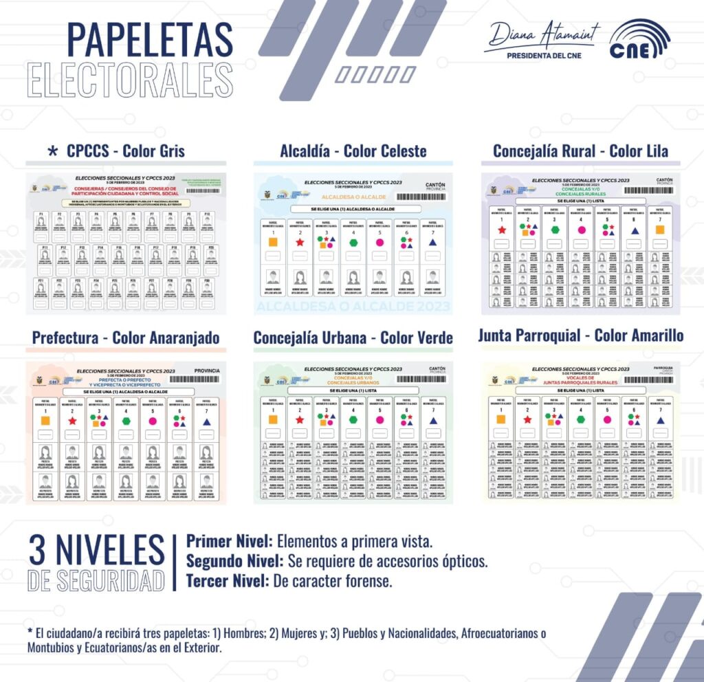 Los ecuatorianos residentes en el extranjero podrán ejercer su derecho al voto con tres papeletas correspondientes a los candidatos al CPCCS (mujeres, hombres e integrantes de pueblos y nacionalidades indígenas, afroecuatorianos, montubios y de ecuatorianos en el exterior).