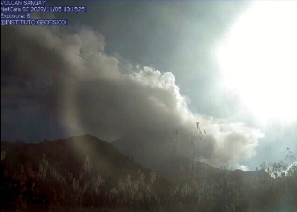 El pasado domingo, el volcán Sangay generó 122 explosiones en un día y una columna de ceniza que se elevó hasta unos dos kilómetros sobre su cumbre.