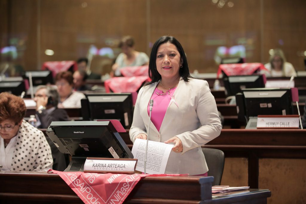 Por unanimidad, el Tribunal Penal de Corte Nacional de Justicia, conformado por los jueces Daniella Camacho (ponente), Luis Rivera y Byron Guillén, sentenció a la ex legisladora Karina Arteaga a seis años y ocho meses de pena privativa de libertad, en calidad de autora directa del delito de concusión; y, a Jenny Muñoz, su exjefa de despacho, como cómplice, a tres años y cuatro meses de prisión.