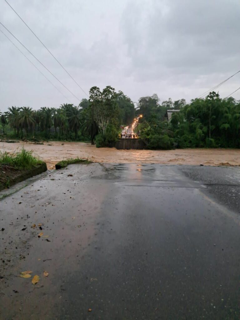 También técnicos de la Secretaría de Gestión de Riesgos están en un monitoreo a lo largo del trayecto del río Blanco para evaluar otros posibles daños ocasionados por la crecida del río. Hay maquinaria y personal operativo en el lugar.