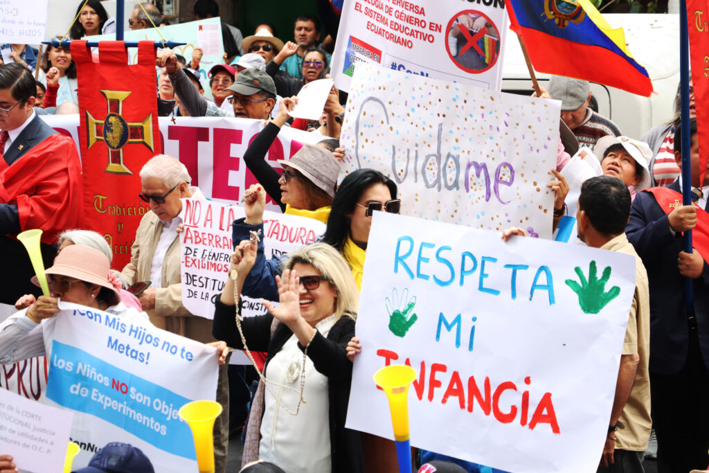 “Los padres tenemos también derecho a la resistencia, a decirles a los colegios que nuestros hijos no van a entrar a esa situación (…) Tenemos que ver la salida legal para que los colegios puedan protegerse”, señaló Fausto Miño, cantante ecuatoriano que fue parte de los organizadores del evento.