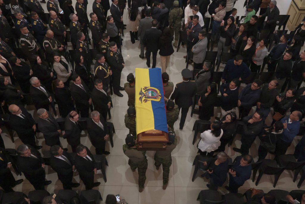 La capilla ardiente se levantó en el colegio Militar Eloy Alfaro de la capital ecuatoriana, hasta donde fueron trasladados los cadáveres vía aérea desde la Amazonía.