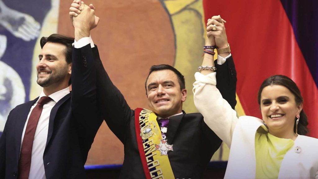 “¡Qué alivio tener una patriota al lado!”, dijo Noboa sobre la vicepresidenta María José Pinto en su primer discurso oficial.