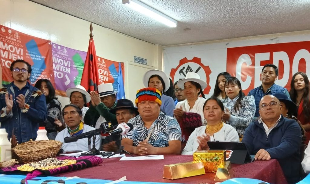 “Muchos procesos hemos ganado ante los tribunales, caso Quimsacocha, entre otros, no se respetan las decisiones del pueblo ecuatoriano, entonces, el único camino ha sido seguir haciendo vocería de resistencia y por resistirnos se nos ha catalogado de muchas formas, nos han estigmatizado”, afirmó el presidente de la Conaie.
