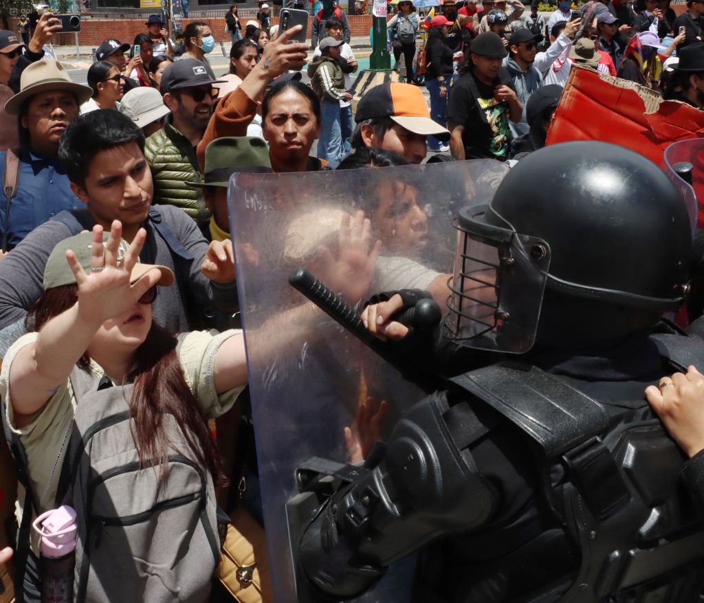 “Nadie puede venir a tomarse por la fuerza la capital de todos los ecuatorianos. A los que eligen la violencia, los espera la ley. A los que actúan como delincuentes, se los tratará como delincuentes”, recalcó el primer mandatario.