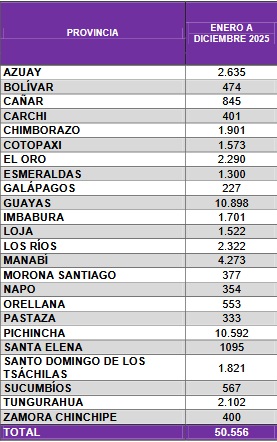 De enero a diciembre de 2025, el Registro Civil celebró 50.556 matrimonios Adicionalmente, inscribió 23.440 divorcios en todo el país, es decir, que por cada dos matrimonios hubo un divorcio.