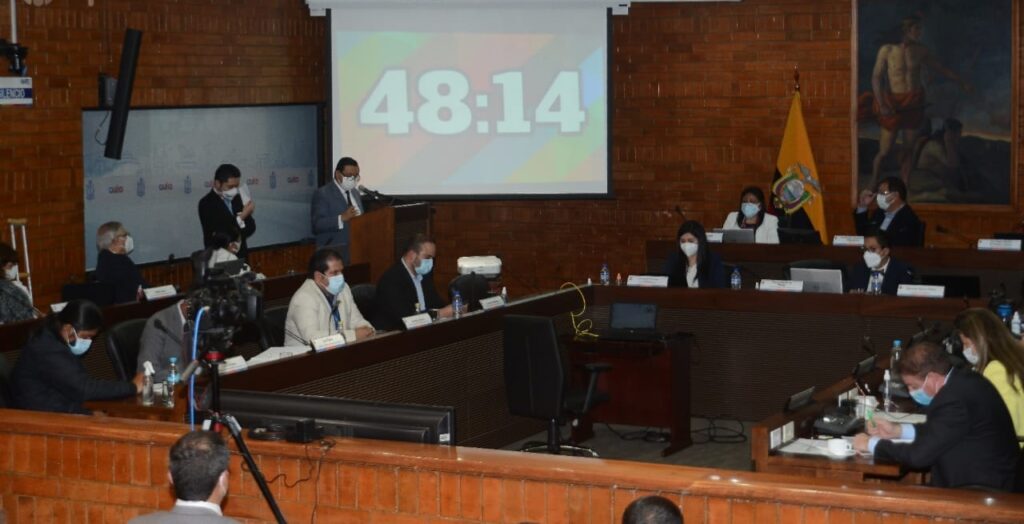 En esta sesión, Marcelo Hallo, representante del colectivo Quito Unido, que presentó el pedido de remoción del alcalde de Quito, Jorge Yunda, retiró la denuncia a través del mecanismo de desistimiento.