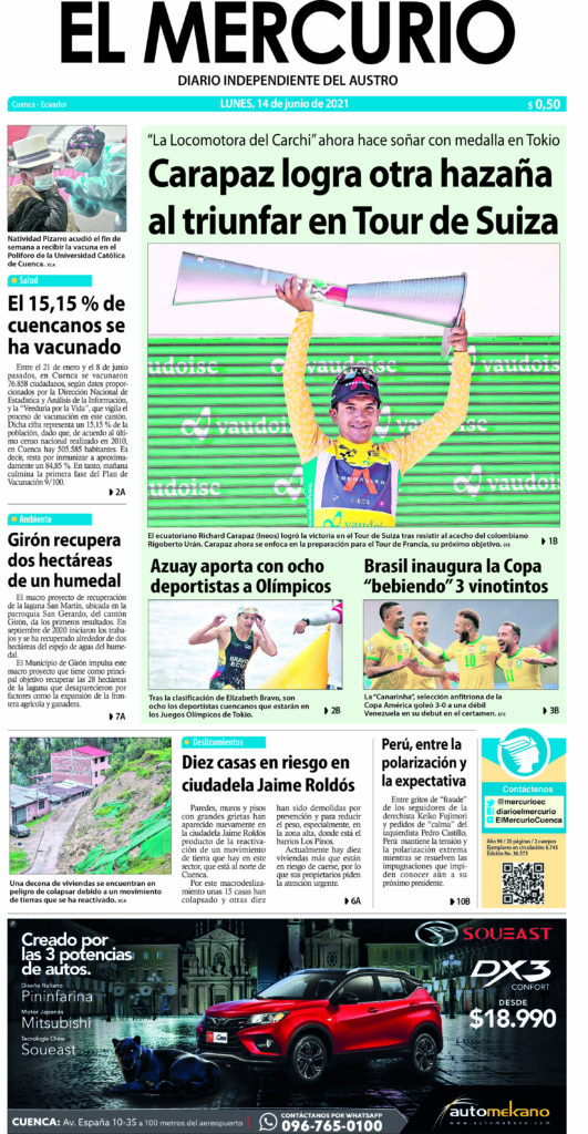 Portada impresa del 14 junio 2021