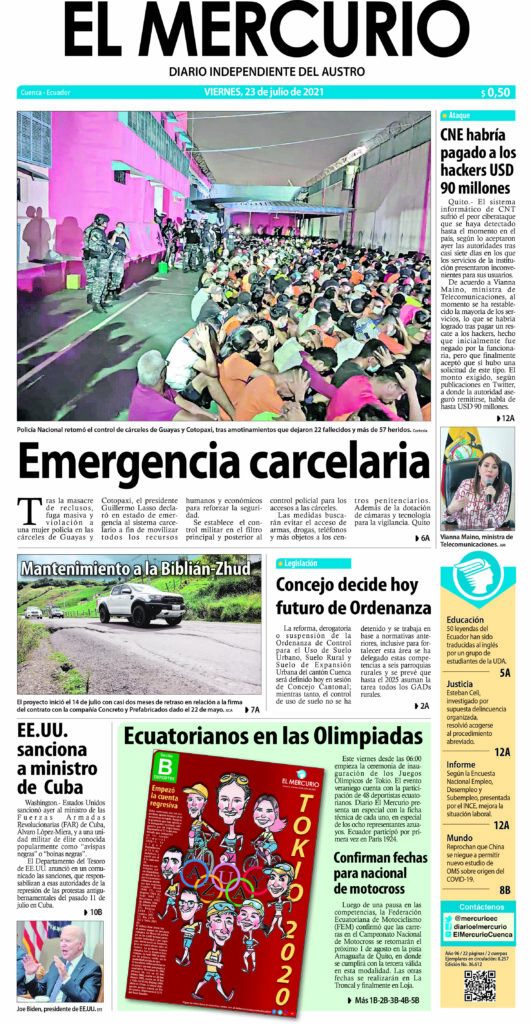 Portada impresa del 23 julio 2021