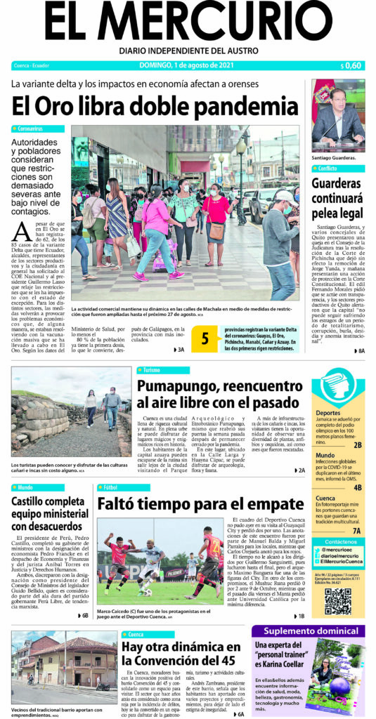 Portada impresa del 1 agosto 2021