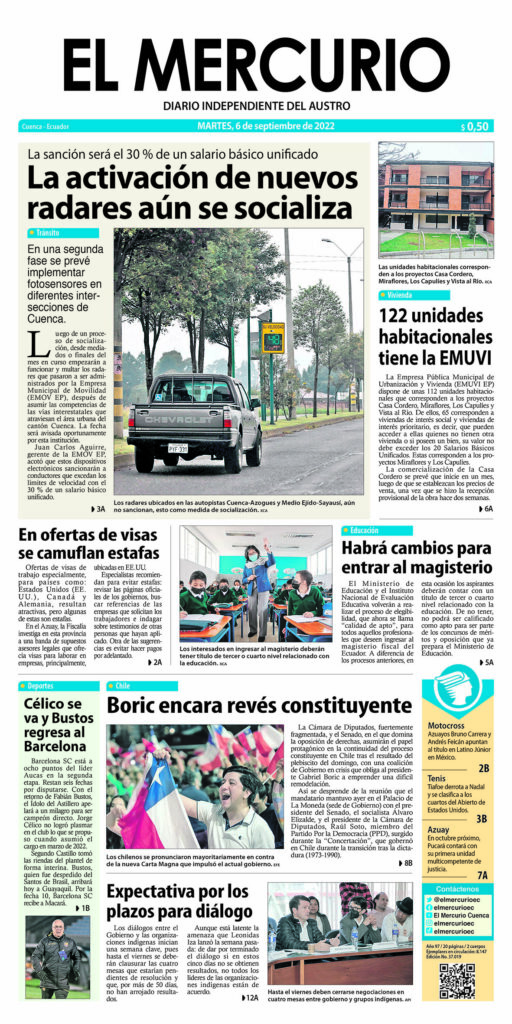 Portada impresa del 6 septiembre 2022