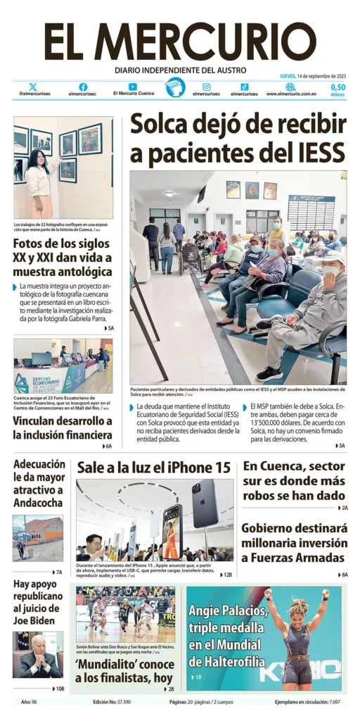 Portada impresa del 14 septiembre 2023