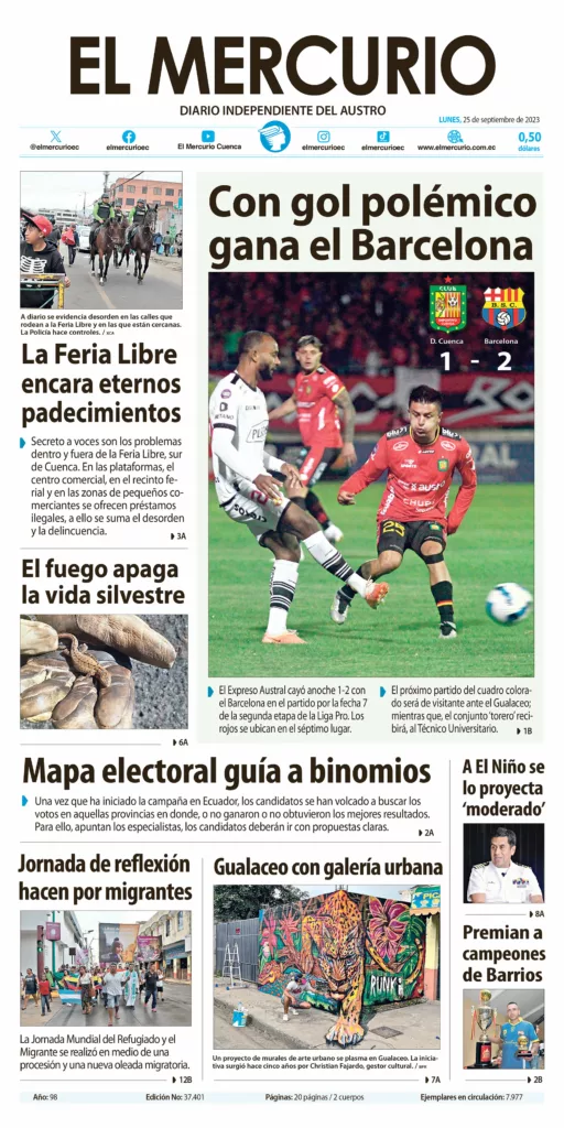 Portada impresa 25 de Septiembre de 2023