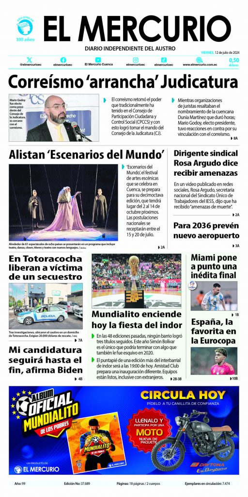 Portada impresa del 12 Julio 2024